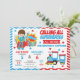 Get ready for a high-speed heroic adventure with this Superhero & Train birthday invitation! Featuring a brave little superhero with a comic-style “BOOM!” in front of a city skyline on one side and a colourful choo-choo train on the other, this design is perfect for a fun and unique shared celebration.