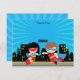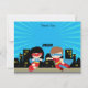 Superheroes Thank You Card Boy Girl Blue Sunburst