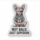 This clean cartoon-style illustration features a confident sphynx cat with pink skin, wearing a gray hoodie and an eyepatch, seated in a calm, composed pose. The limited color palette and crisp vector lines create a bold, modern look with strong visual focus. The phrase “Not Bald. Just Superior.” adds sharp, sarcastic humor, making this design ideal for fans of edgy cat art, meme culture, and confident, minimalist aesthetics.