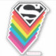 DC Pride | Superman's iconic logo with layers of rainbow colours projected behind it.