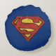 Superman S-Shield | Grunge Black Outline Logo Round Cushion