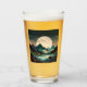 An abstract landscape of a massive supermoon in a mountain lake scene with a flock of birds in bold textures and dark earthy tones of brown, beige, tan, blue, cyan, and black.