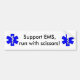 EMS bumper sticker, "Support EMS, run with scissors," show your sense of humour.