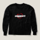 The bright red heart paired with white vintage-style text on a black background creates a powerful yet minimal look.