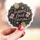 Show your love for fresh, local produce with this "Support Local Farmers" sticker! Featuring a beautiful floral wreath design on a dark background, this sticker is perfect for anyone who appreciates the hard work of farmers and the importance of sustainable agriculture. This durable vinyl sticker is great for laptops, water bottles, car windows, and more.