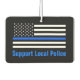 Elegant and bold thin blue line American flag to show support for Local Police Officers, Department and Law Enforcement. Black blackground with bright blue and white patriotic theme. Show your community pride around your house, home, small business or neighbourhood with a Support the Police themed gift for Father's day or any occasion for a new police Academy graduate or family member of a Police officer.