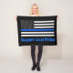 Elegant and bold thin blue line American flag to show support for Local Police Officers, Department and Law Enforcement. Black blackground with bright blue and white patriotic theme. Show your community pride around your house, home, small business or neighborhood with a Support the Police themed gift for Father's day or any occasion for a new police Academy graduate or family member of a Police officer.