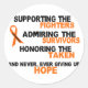 Support every person battling Leukaemia, Admire and Celebrate the Leukaemia Survivors, and Honour those Taken from us by Leukaemia with our inspirational Supporting the Fighters Admiring the Survivors Honouring The Taken t-shirts, tees, shirts, gifts, and apparel with Orange Ribbon. Perfect way to Support the Warriors, Survivors, and Fallen Heroes during Leukaemia Awareness Month, Leukaemia Awareness Walks and other Fundraising Events, or ANY time in between! LIKE THIS?