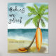 Baby on Board! Baby shower invitation - perfect for a summer baby shower. Beach theme. Watercolor design has a ocean and beach scene with surfboard, palm tree and summer hat.