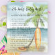 Baby on Board! Baby shower invitation - perfect for a summer baby shower. Beach theme. Watercolor design has a ocean and beach scene with surfboard, palm tree and summer hat.