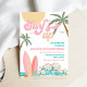 Make waves with this fun surf birthday party invitation, perfect for kids who love the beach and ocean vibes. Featuring palm trees, surfboards, waves, and a sunny coastal design, this invite sets the tone for a tropical celebration. Ideal for summer birthdays, pool parties, or surf-themed events, its customizable with your party details to create a unique keepsake. Guests will love the playful design and festive energy, making your celebration unforgettable.