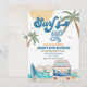 Make waves with this vibrant surf birthday party invitation, perfect for kids who love the beach and ocean fun. Featuring palm trees, surfboards, waves, and a retro van, this tropical design sets the tone for a lively seaside celebration. Ideal for surf-themed birthdays, pool parties, or summer gatherings, its customizable with party details to create a unique keepsake. Bring the sunshine and surf spirit to your childs special day with this eye-catching invitation.