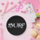 Surf paper plates are for surfers and surfing fans on the beach or anywhere. Surf is Steamy Raimon original calligraphy art.