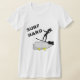 Silhouette image of a witch balancing on a broom surfing the stormy skies. Grey cloud with yellow lightnings. Text Surf Hard. One-of-a-kind unique and funny t-shirt for beautiful women, ladies, girls and other brave female characters. Customisable. You can change the image and you can change or delete the template text Surf Hard. Do not forget to choose another style and colour of a shirt. Have fun.