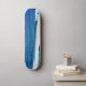 Pictured is a pretty scene of blue breaking sea waters and hills