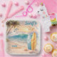 Serve up some sunny surf vibes with these “Surf’s Up” retro beach birthday plates! Designed with a hand-painted watercolor scene featuring surfboards in the sand, seashells, ocean waves, swaying palm trees, a playful dolphin leaping through the surf, and a seagull cruising overhead, these plates bring all the laid-back charm of a vintage beach day.
