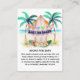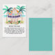 Beach theme baby shower "Books for Baby" enclosure card features a tropical paradise with sun, sea, palm trees and a surfboard adorned with a "Baby On Board" banner, festive string lights, hibiscus and palm leaves. The colours are gender neutral and perfect whether you are having a girl or boy little one, and the text can be personalised. Art by KL Stock