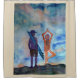 Surf and Yoga painting, inspiration for sport lovers and nature fans. Cool original art on shower curtain.