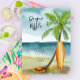 Baby on Board! Baby shower invitation - perfect for a summer baby shower. Beach theme. Watercolor design has a ocean and beach scene with surfboard, palm tree and summer hat.