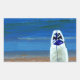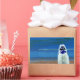 Beach photography gifts featuring a white surfboard standing in the sand with the beautiful blue beach in the background. Photo was taken at Flagler Beach, Florida.