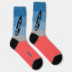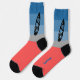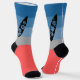 Surfboard on each side on the calves with a split colour gradient from blue to greay and finally coral red on the foot part of the socks. Unusual, colourful and representing your hobby and lifestyle. Available in different variations.