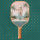 Surfboard Tropical Island Floral Teal Initials Pickleball Paddle
