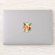 Laptop sticker with a surfboard and tropical leaves and flowers with text, "Surf's up."