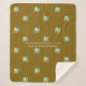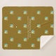 Beach-themed surfer's fleece blanket to personalise. A little pattern of three, illustrated surfboards covers this golden brown blanket. Customise text in the centre with a family name, or any text. Use to keep warm on windy days on the coast.