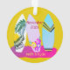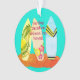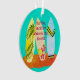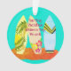 Surfing vacation keepsake ornament with illustrated design on both sides. Add custom wording in three places with vacation location, date of trip, and names. Create this unique keepsake for the Christmas tree or to hang in the car or elsewhere.