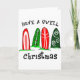 Holiday Surfer products, Christmas Gifts for surfing fans with picture of holiday Christmas patterned surfboards on the beach and holiday greeting, have a swell Christmas.