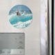 Round photo magnet with a professional surfer surfing his board on a big wave at Banzai Pipeline, North Shore, Oahu, Hawaii.