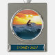 Personalised Christmas ornament for surfer. This tree ornament is the perfect keepsake gift for anyone who loves to surf. Upload a photo with text underneath. Include name, year, or location to fit the space. The surfing theme is only a sample, and this ornament can be used to create any type of keepsake.