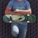 Surfer Surfing Silhouette Skate Board Deck Design by Artist Rick Short created from an original painting entitled The Tube Ride. Fun, Surrealistic art of a surfer inside the hollow tube of a wave off the coast of Hawaii.