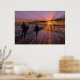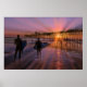 Living the dream in Southern California. Two surfers hold their boards while watching a dramatic sunset at the Oceanside Pier.