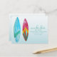 Save the date wedding postcards in a watercolor surfboard design, perfect for surfers and their beach wedding. Add your wedding details to the front and backside of the postcard - mail to friends and family asking them to reserve your wedding date.