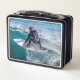 This is a standard metal lunchbox that appears to work just fine. We designed this box ourselves with an uploaded photo and custom text on the front and back. It looks absolutely beautiful except the front of the lunchbox is not centered like it shows in the photo. The print borders don't align with the inset flat part of the box where the preview photo online showed it perfectly centered in there. The back looks nice and centered though.