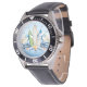 My husband loves the watch, he likes the dial, the graphics, the band, and it keeps perfect time.
