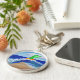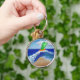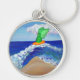 (The painting is of a green angel on an orange surfboard catching a wave. A sun glows in the background and palm tree gently sways on the beach. The wave is getting ready to crash on the beach smoothing the sandy surface. The green angel pays tribute to the Archangel Raphael whose colour is green and is known for bringing healing. The sun helps sustain life and through it plants such as palm trees strengthen and grow. The power of sun's energy is symbolised in the matched orange- yellow surfboard. The beach is clean and smooth. This painting was inspired by the "Wipe Out Cancer Angel". Instead of adding text of this painting, it was left open so you can your own wipe out, riding the wave, or other go with flow message to the beach, cloud, or sky. Proceeds from the sale of this keychain support DonnaBellas Angels, a 501(c)3 non-profit charity.
