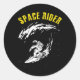 Cool design with an astronaut surfing in space and the saying "Space Rider".