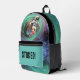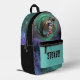 Colourful backpack of a surfing astronaut in space. Placeholder text reads: "STOKED!" but you can update as you see fit. Makes great book bag!