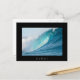 Postcard of a great surfing barrel wave breaking into a big splash and turquoise colours in the best place to surf, the Pacific Ocean with a black border and the text: 'Hawaii'.