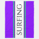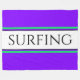 This fun classy design features modern typography inside a wide white centre stripe highlighted with floating mint green pinstripes against a vivid purple background with SURFING text written across the design inside the centre stripe. The colours and text can be personalised.