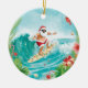 Surfing Christmas with Santa Claus surfer Ceramic Tree Decoration