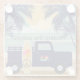 Coaster with image of seventies truck, surfboard and peace sign. Riding the Waves!