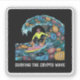 Catch the vibe with our "Surfing the Crypto Wave" sticker. This vibrant design features a dynamic surfer skilfully riding a wave composed of cryptocurrency symbols and digital patterns. The colours and energetic composition capture the thrill of surfing while celebrating the exciting world of cryptocurrency. Perfect for surf enthusiasts, crypto lovers, or anyone who wants to ride the wave of innovation. Stick it on your laptop, water bottle, or surfboard and show off your passion for both surfing and crypto.