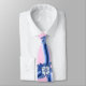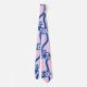 Pink & Ocean Blue Colorway. This tie is inspired by the board shorts and aloha shirts of the sixties, this boldly coloured pattern combines competition stripes, hibiscus & a palm tree island. These designs come in several colorways.