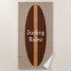 Here's a really cool surfing theme men's beach towel with image of a wooden surfboard digitally printed on the towel vertically with the words surfing rules in text you can replace with any message you want or leave it as it is. Coolest way to enjoy your day at the beach as a surfer without actually going in the water in a novelty design.