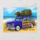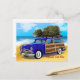 Surfing Woodie with Christmas Tree Holiday Postcard