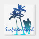 This classic surf icon features a longboard surfer looking out at the ways from under palm trees at Surfrider Beach. This design is a blend of vibrant colours. These designs come in several colorways.