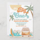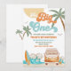 Celebrate your little ones big milestone with this retro beach and surfing themed first birthday invitation. Featuring palm trees, ocean waves, a surfboard, and a groovy van with a peace sign, this cheerful design sets the perfect tone for a fun seaside party. Pastel colors and playful fonts create a nostalgic yet modern vibe, making it ideal for tropical, surf, or beach-inspired celebrations. Personalize easily for your childs special day and make waves with a unique party invite that guests will love.